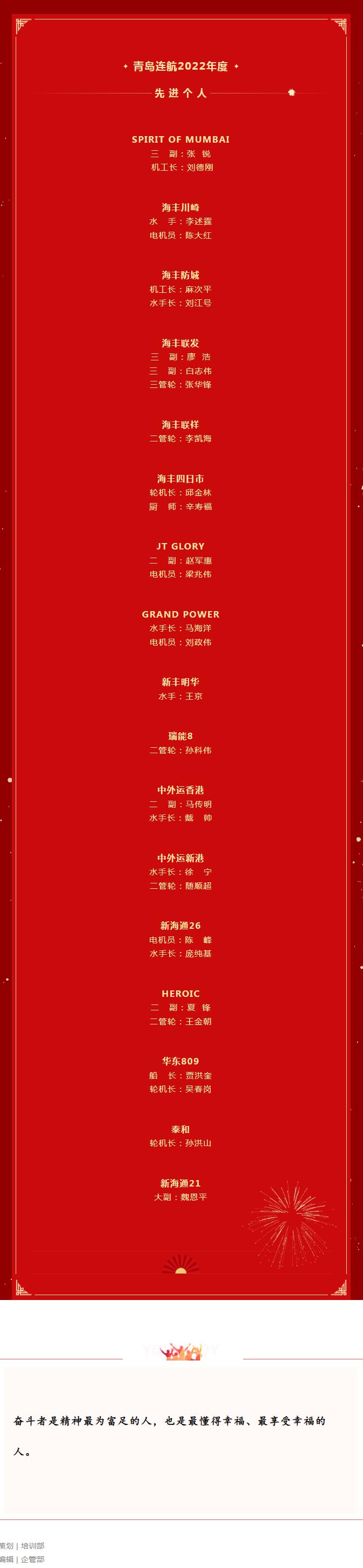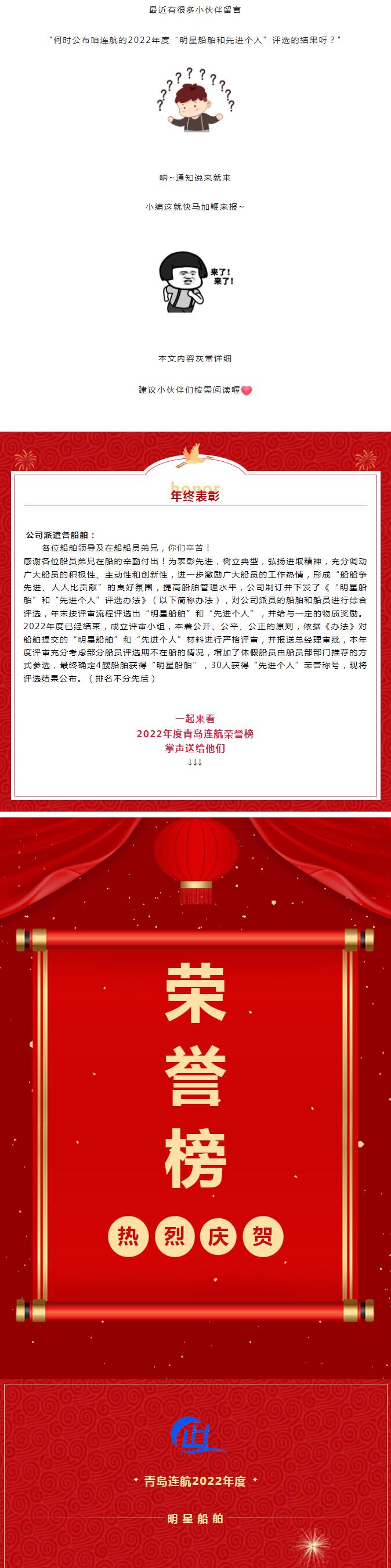 隆重表彰 │ 2022年度青島連航明星船舶和先進(jìn)個(gè)人